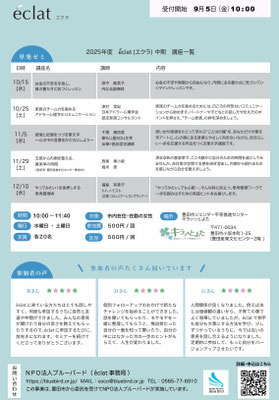 豊田市女性のためのスキル&マインドアップセミナー『eclat(エクラ)』の第15回目